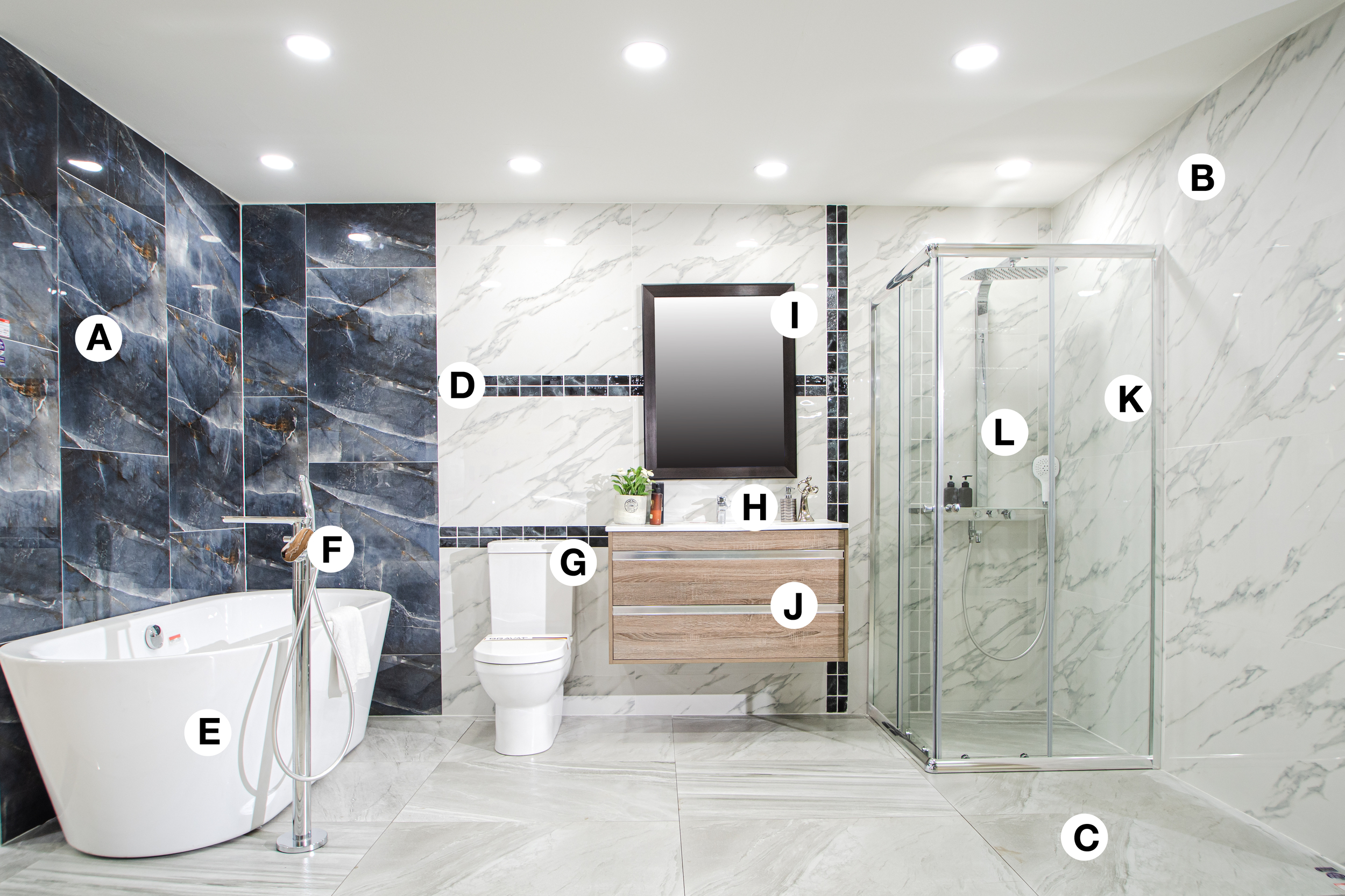 ทั้งสีเข้มและสีอ่อน ในห้องนี้เสน่ห์แห่งความลึกลับ เรียบหรู เหมาะกับห้องน้ำคนที่ชอบลายกระเบื้องลายหินอย่างกระเบื้อง AEGEAN BLUE เป็นกระเบื้องแกรนิตโต้ ออกสีน้ำเงินดำ