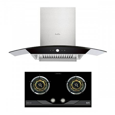 AXIA.C-Curve 90 +DMF73-2G (เครื่องดูดควันแบบกระโจม+ เตาแก๊สกระจก 2หัว)