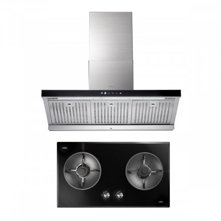 MEX.SET K635BFX90+V7812MHR (เครื่องดูดควันแบบกระโจม + เตาแก๊สกระจกสีดำ 2 หัว)