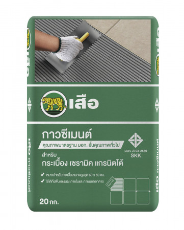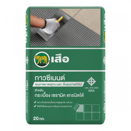 เสือ กาวซีเมนต์ เขียว สำหรับกระเบื้องเซรามิค แกรนิตโต้ งานปูผนังเหมาะกับกระเบื้องเซรามิกและแกรนิตโต้ ขนาด 60×60 ซม. ขนาดบรรจุ 20 กก./ถุง