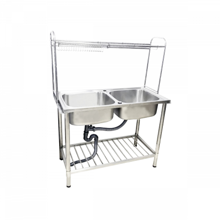 Dyna.DH-1050GB ซิงค์ล้างจาน 2 หลุมแบบมีขาตั้งและมีชั้นคว่ำจาน
