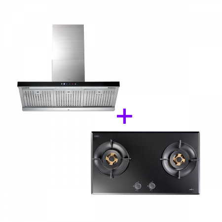 MEX.SET K635BFX90 + V3772MHR เครื่องดูดควัน + เตาแก๊สกระจก 2 หัว