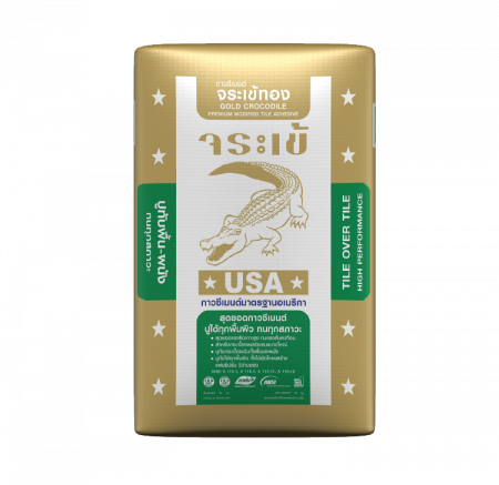 กาวซีเมนต์ จระเข้ทอง Gold Crocodile สุดยอดกาวซีเมนต์ ปูได้ทุกสภาพผิว ทนทุกสภาวะ มีการยืดหยุ่น และแรงยึดเกาะสูง ทนต่อทุกสภาพอากาศ แรงกด และทนแรงสั่นสะเทือนได้ดี ใช้สำหรับกับกระเบื้องพอร์ซเลนขนาดใหญ่ และสามารถปูทับกระเบื้องเดิมทั้งพื้นและผนัง รวมทั้งปูได้ทุกพื้นผิว ทั้งไม่อัดโครงสร้าง แผ่นยิปซั่ม และวีว่าบอร์ดได้