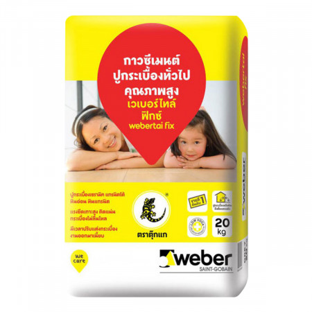 -กาวซีเมนต์ เวเบอร์.ไทล์ ฟิกซ์ กาวซีเมนต์ขายดีอันดับ 1 ในไทย -มีสารยึดเกาะพิเศษ กระเบื้องไม่ลื่นไหลเวลาปูบนผนัง -มีช่วงเวลาที่ใช้กาวซีเมนต์หลังผสมน้ำที่เหมาะสม ทำให้มีระยะเวลาปาดกาวซีเมนต์ได้นานขึ้น (เก็บให้ห่างจากความร้อนและแสงแดด) -พื้นผิวสามารถสัญจรได้หลังทิ้งไว้ 24 ชั่วโมง -สามารถปรับและแต่งแนวกระเบื้องได้ภายใน 15 นาที มาตรฐานการรับรอง -มาตรฐานนานาชาติ/ยุโรป -แรงยึดเกาะของกาวซีเมนต์กับกระเบื้อง ISO 13007 part 2-4.4.4.2 หรือ EN 1348-8.2 -มาตรฐาน ≥0.5 N/mm2 l ผลการทดสอบ 1.46 N/mm2 -แรงยึดเกาะของกาวซีเมนต์กับกระเบื้องหลังแช่น้ำ ISO 13007 part 2-4.4.4.3 หรือ EN 1348-8.3 -มาตรฐาน ≥0.5 N/mm2 l ผลการทดสอบ 1.31 N/mm2 -แรงยึดเกาะของกาวซีเมนต์กับกระเบื้อง ณ เวลาที่ ต่างกัน ISO 13007 part 2-4.1 หรือ EN 1346 -มาตรฐาน ≥0.5 N/mm2 l ผลการทดสอบ 0.72 N/mm2 มาตรฐานอเมริกา -การรับแรงเฉือนของกาวซีเมนต์กับกระเบื้อง ANSI 118.1 - 2012 -กระเบื้องบุผนัง (Glazed wall tiles) -7 วัน มาตรฐาน ≥ 14.06 ksc l ผลการทดสอบ 19.9 ksc -กระเบื้องโมเสค ดูดซึมน้ำต่ำ (Porcelain mosaics) -1 วัน มาตรฐาน ≥ 3.52 ksc l ผลการทดสอบ 8.1 ksc -7 วัน มาตรฐาน ≥ 10.55 ksc l ผลการทดสอบ 12.6 ksc -28 วัน มาตรฐาน ≥ 10.55 ksc l ผลการทดสอบ 16.7 ksc